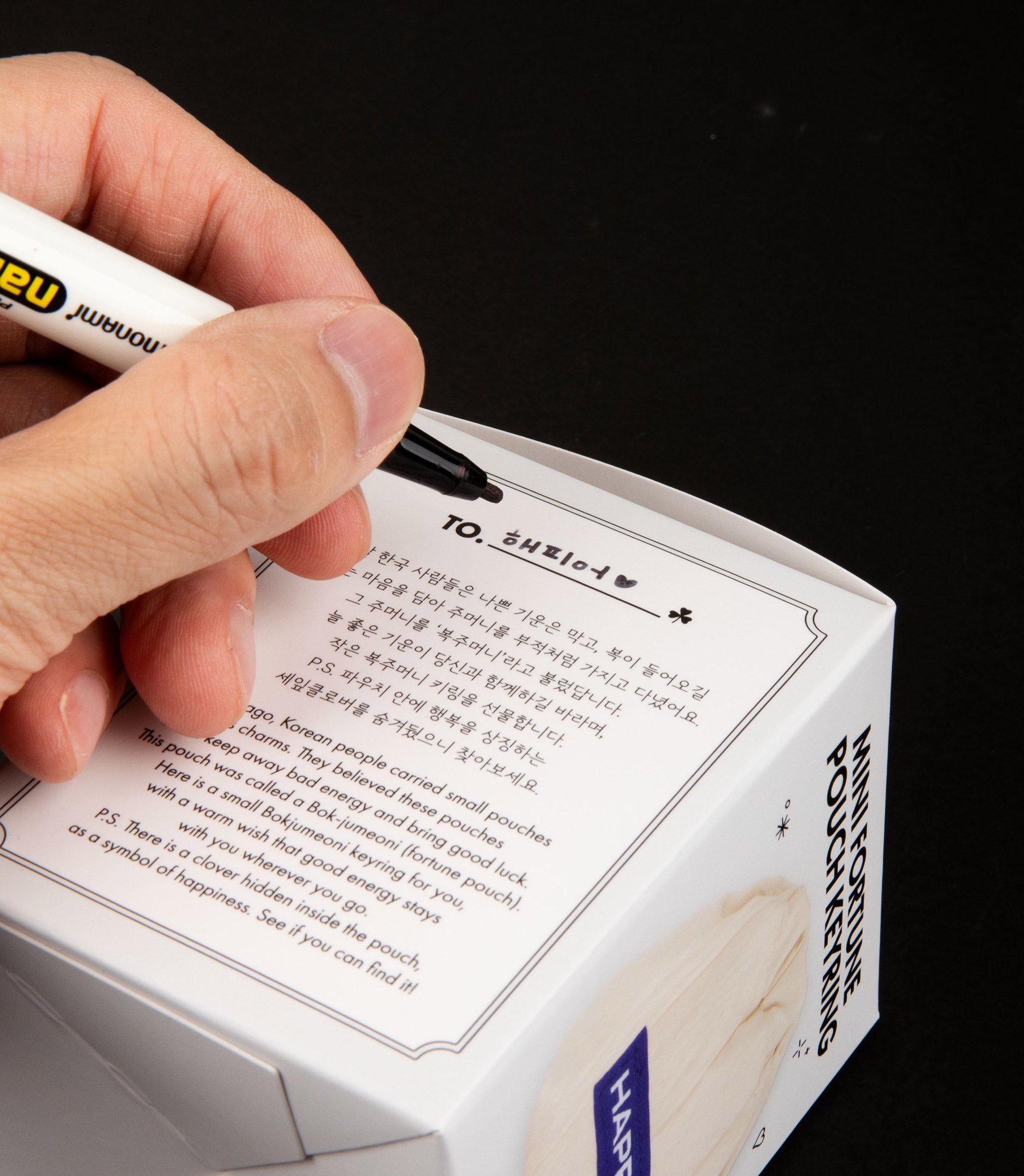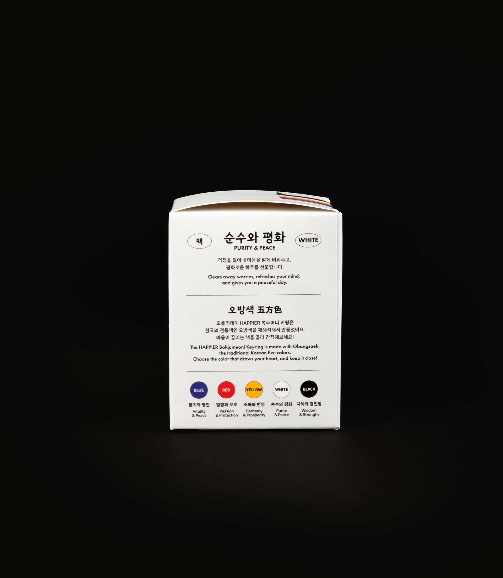The HAPPIER Bokjumeoni Keyring is made with Obangsaek, the traditional Korean five colors. Choose the color that draws your heart, and keep it close!