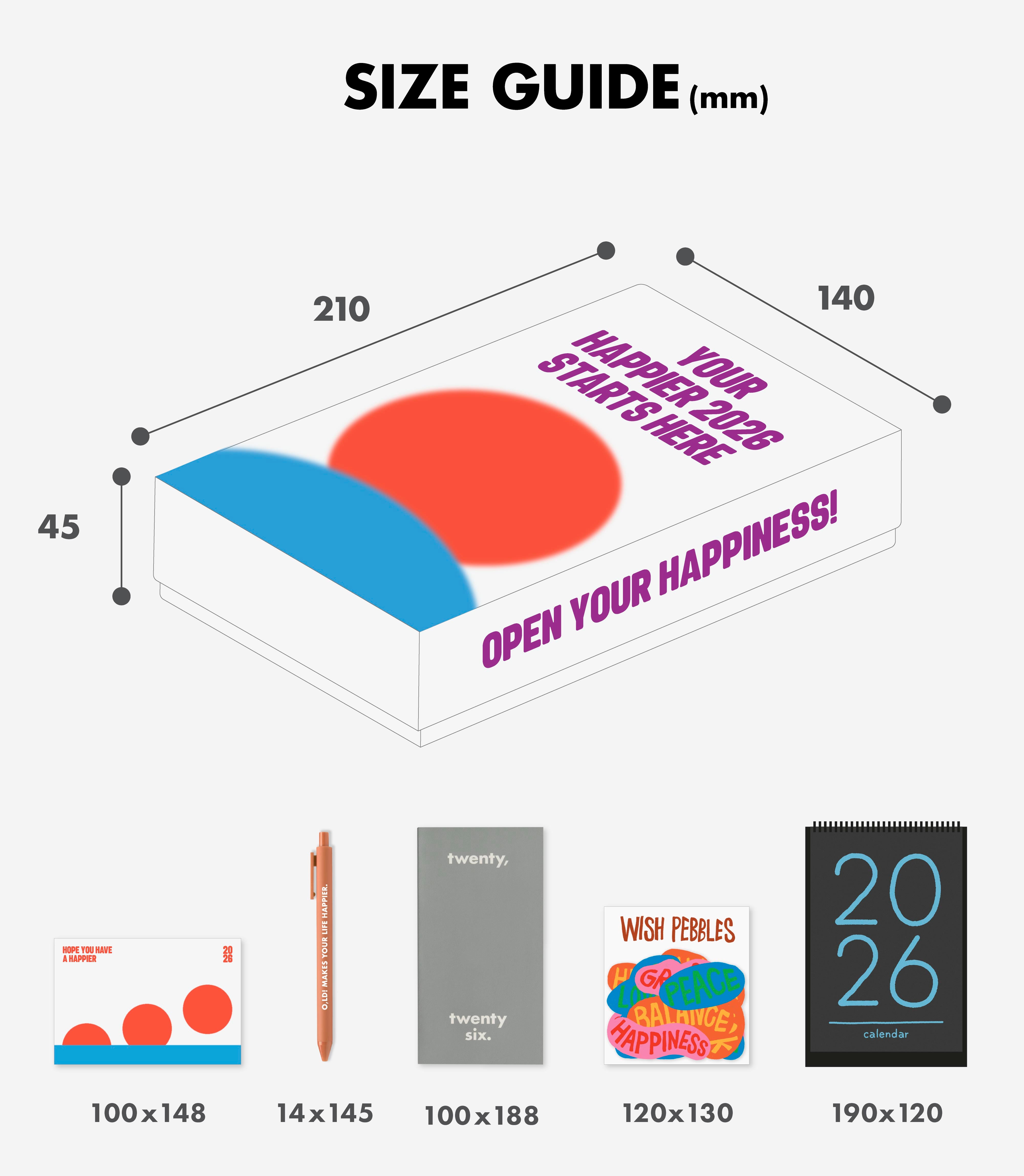 Wishing for an even happier year ahead, we put together the Happier 2026 package_diary with only our most popular, well-loved products.