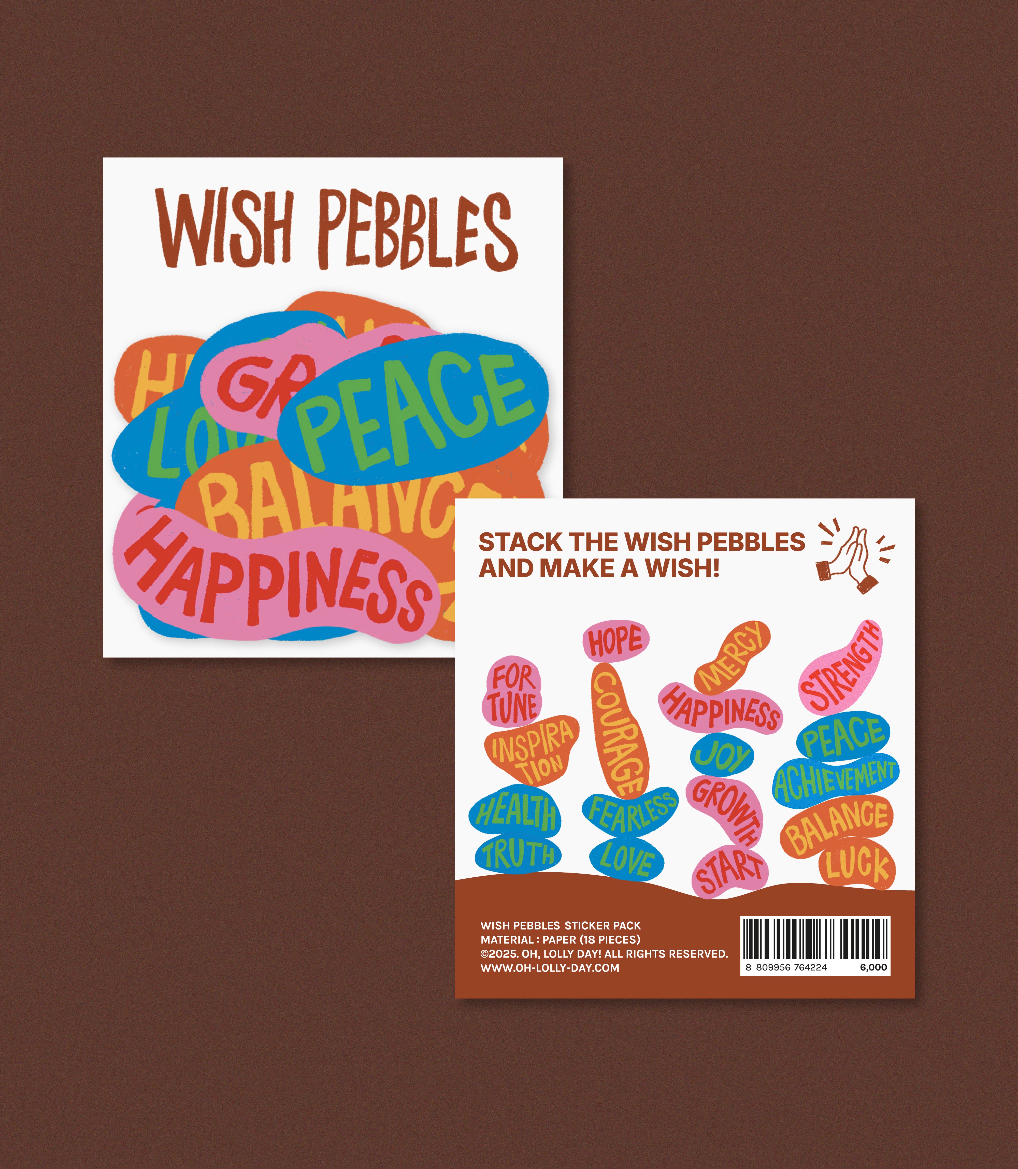 This sticker pack was inspired by the Korean tradition of stacking stone towers and making wishes. Happiness, growth, joy, courage… What’s the keyword you wish for most this year? Choose your favorite words from 18 meaningful keywords, and stick them on your diary cover, laptop, or anywhere you like — use them as your own little lucky charms for the year ahead.